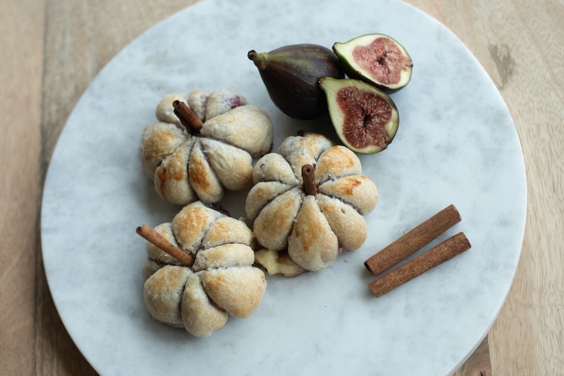 Packa sedan in innehållet i smördegen och knyt baksnöret som bilden till höger, för att få dem att likna pumpor.
